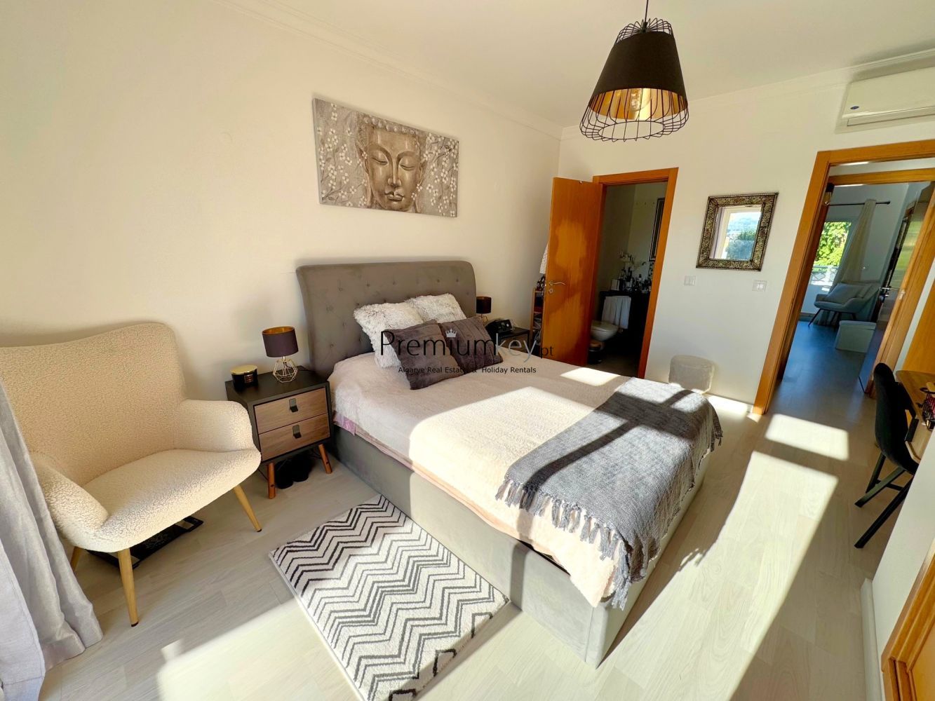 Construção e acabamentos de elevada qualidade tais como: vidros duplos em todas as portas e janelas, estores elétricos, caixilharia de alumínio, ar condicionado, parquet flutuante, barbecue e cozinha totalmente equipada.