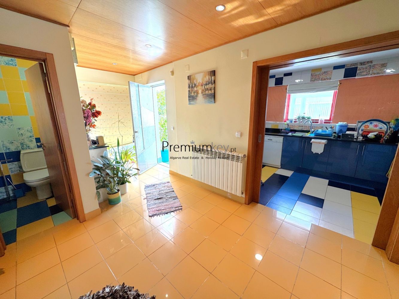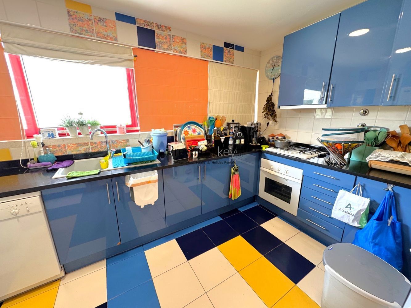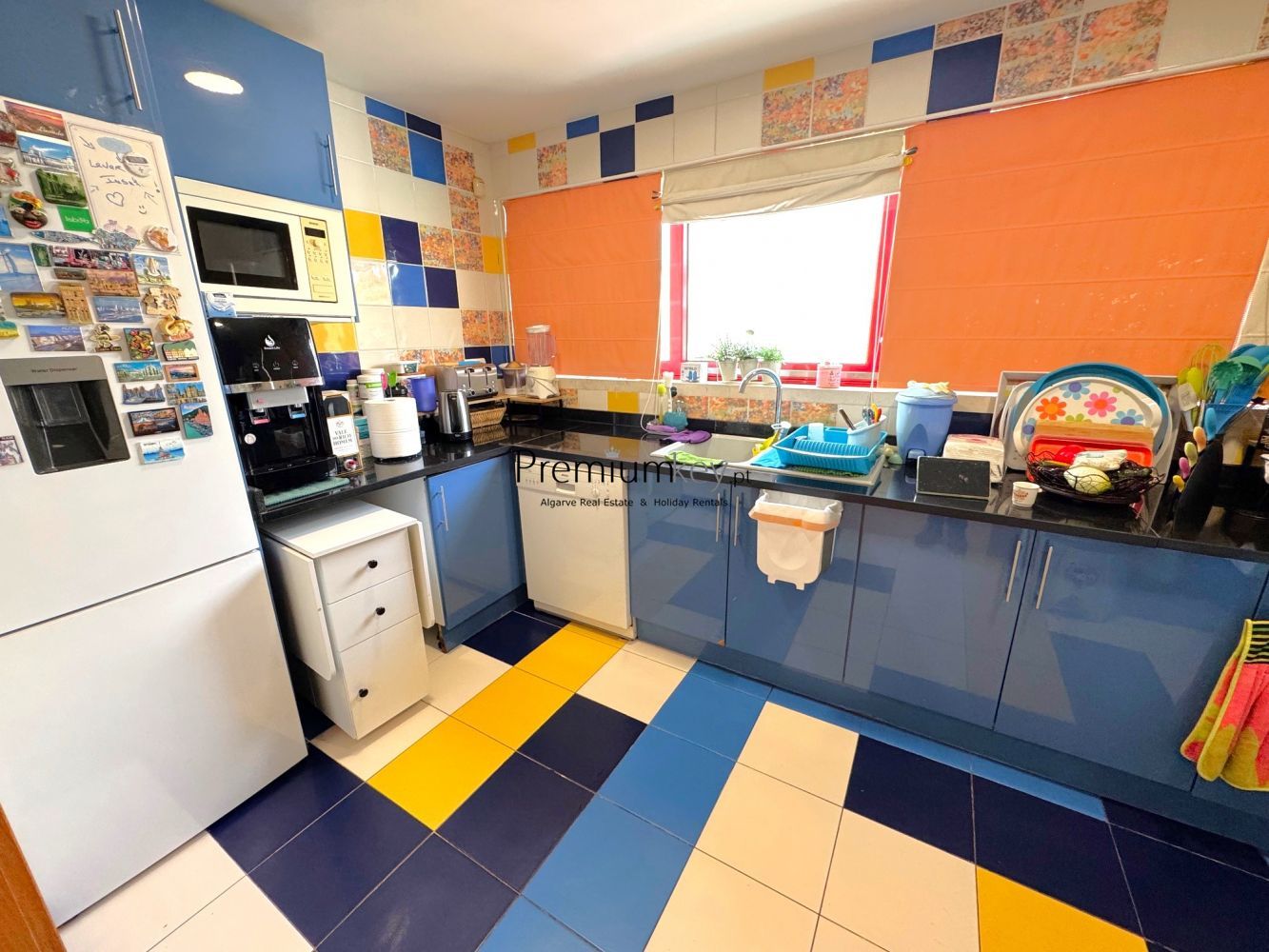 With excellent sun exposure, a south-facing orientation, and typical, colorful architecture of this area. Large windows allow for abundant natural light throughout the day.