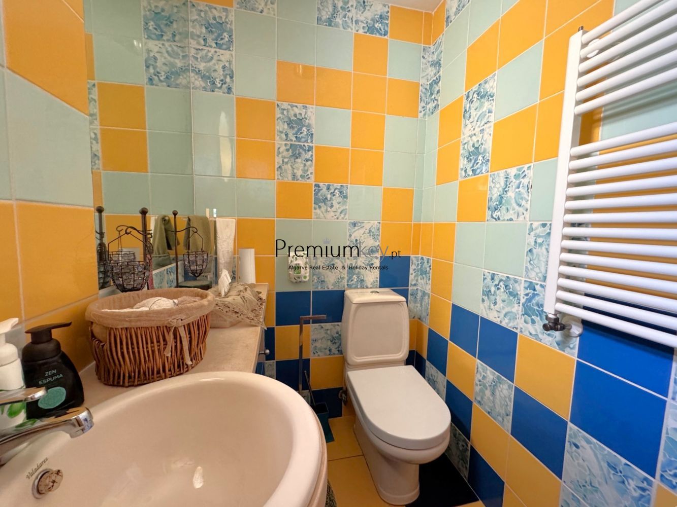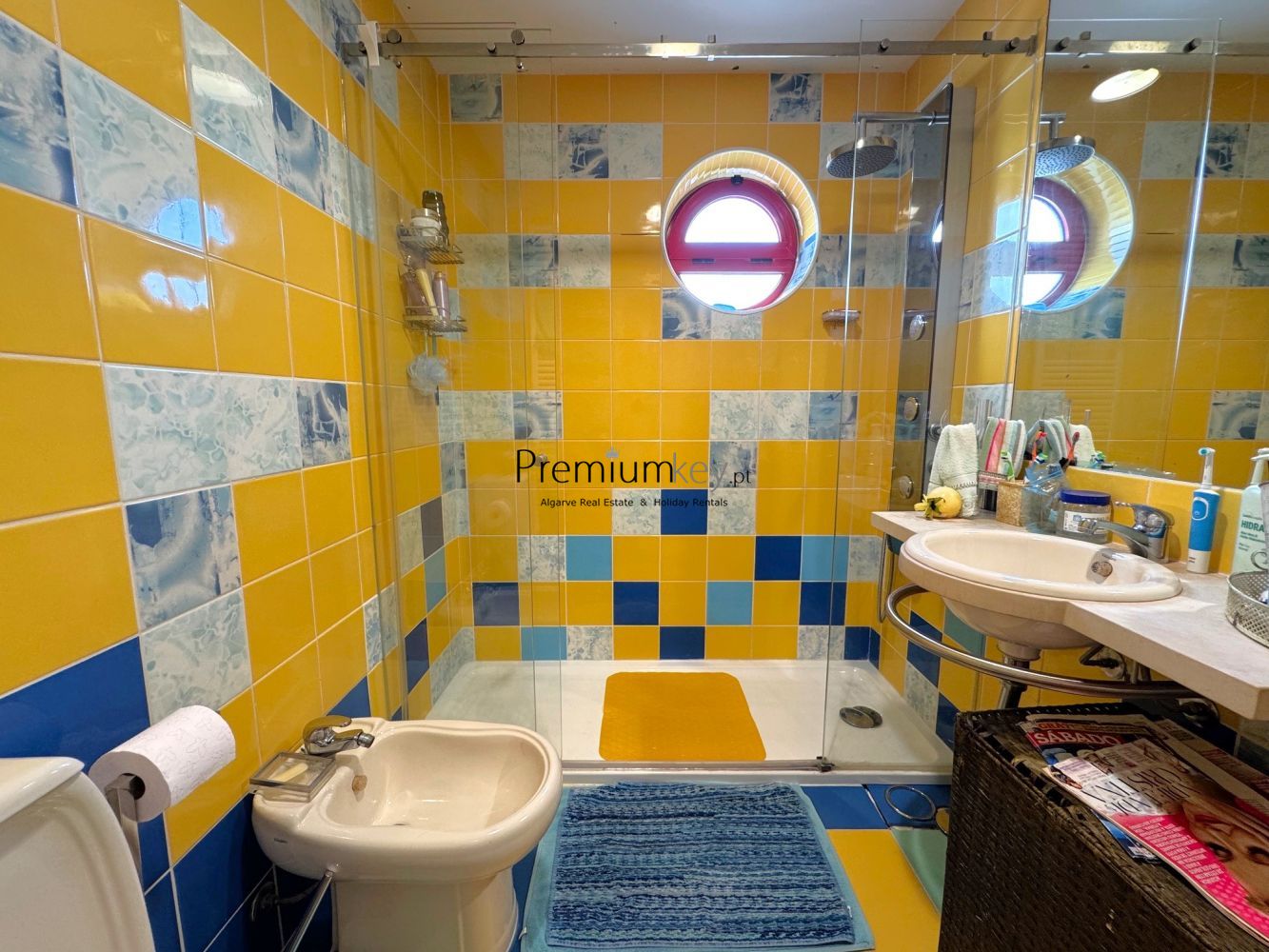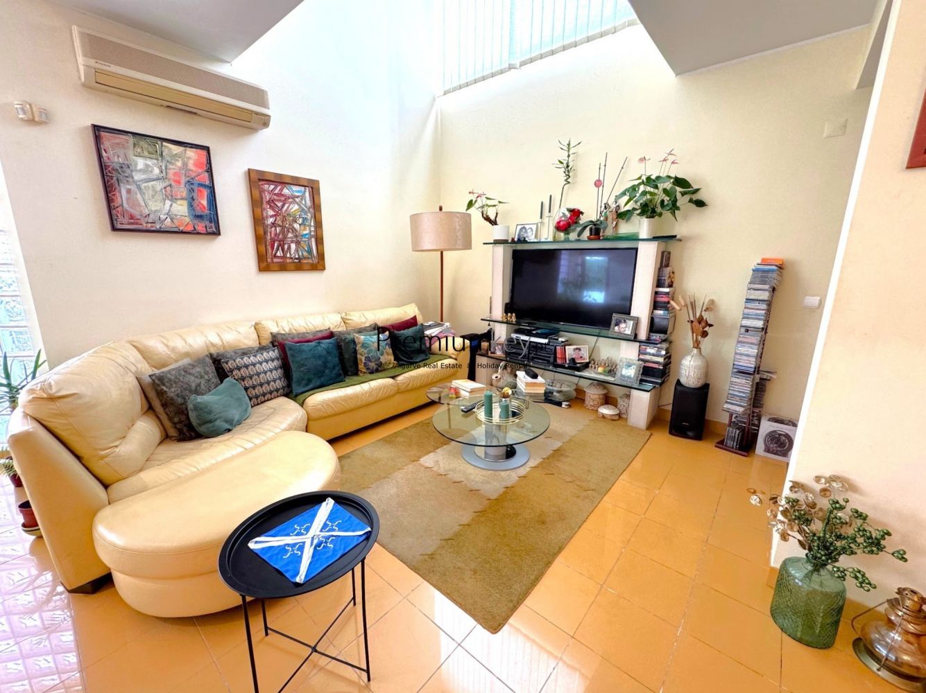 With excellent sun exposure, a south-facing orientation, and typical, colorful architecture of this area. Large windows allow for abundant natural light throughout the day.