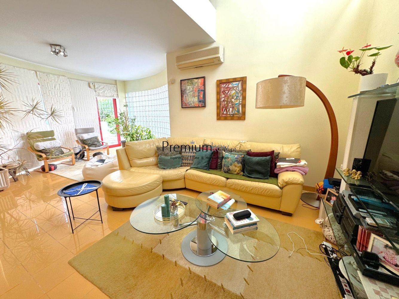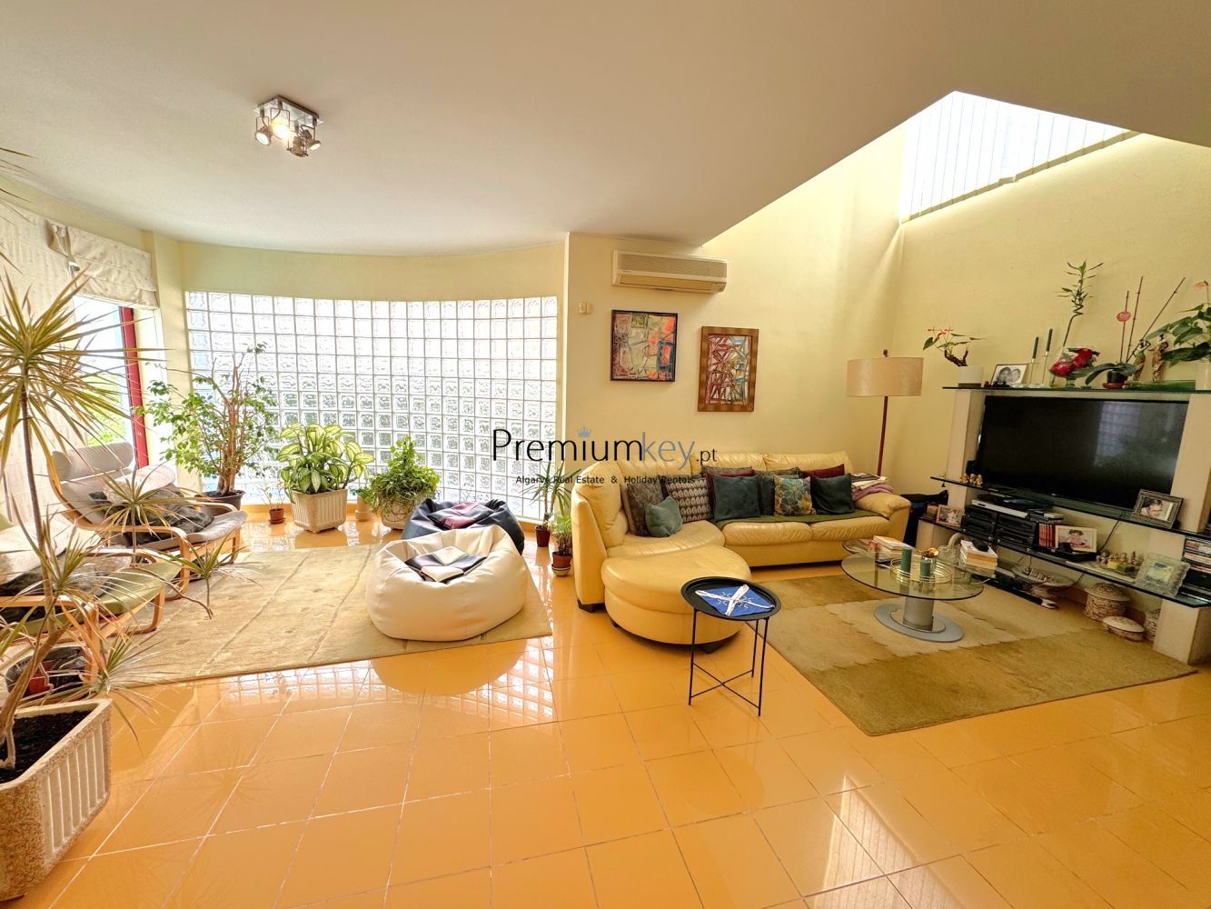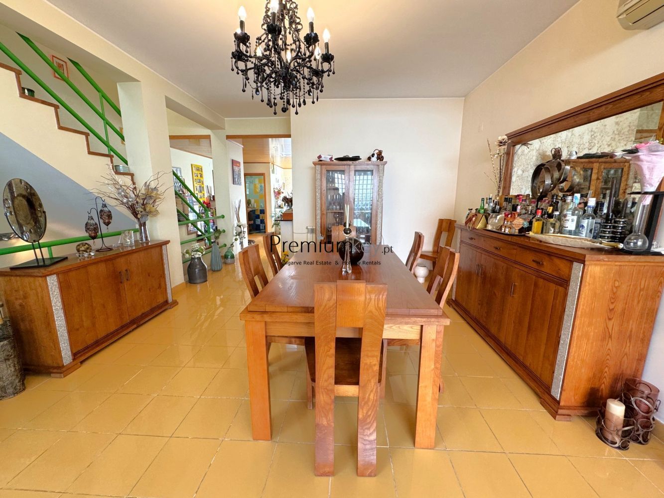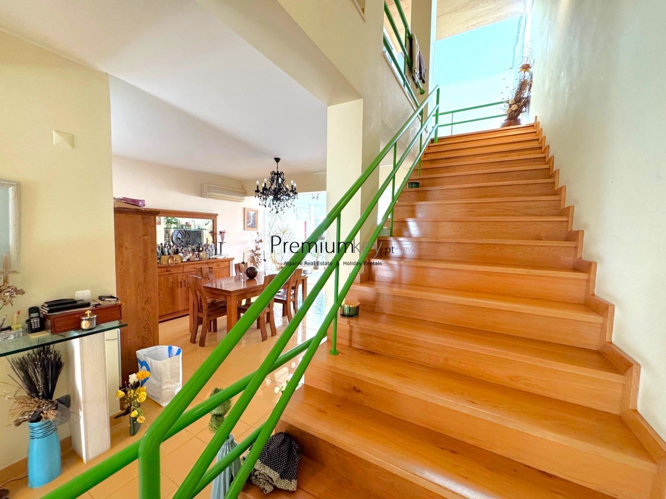 Construção e acabamentos de elevado padrão de qualidade como: alarme, ar condicionado e aquecedores de parede na sala e quartos, vidros duplos, caixilharia dupla de alumínio e uma claraboia que confere muita luminosidade a toda a moradia.