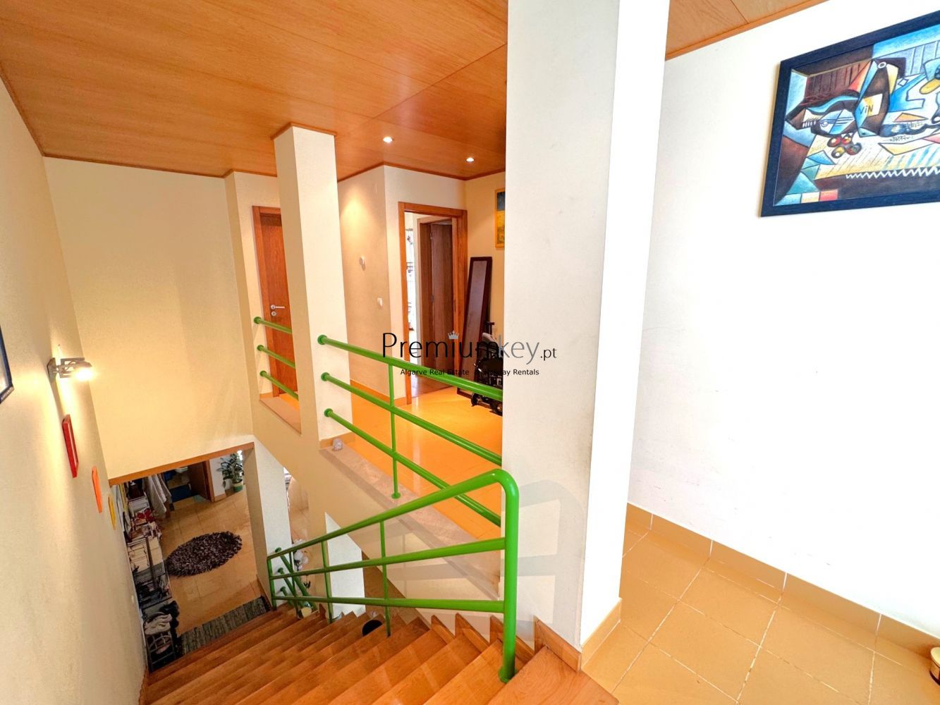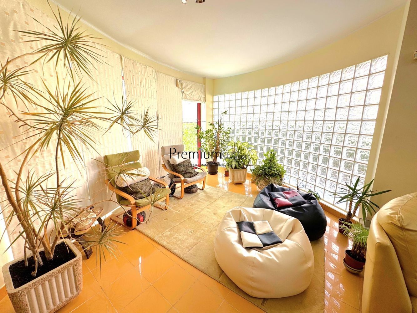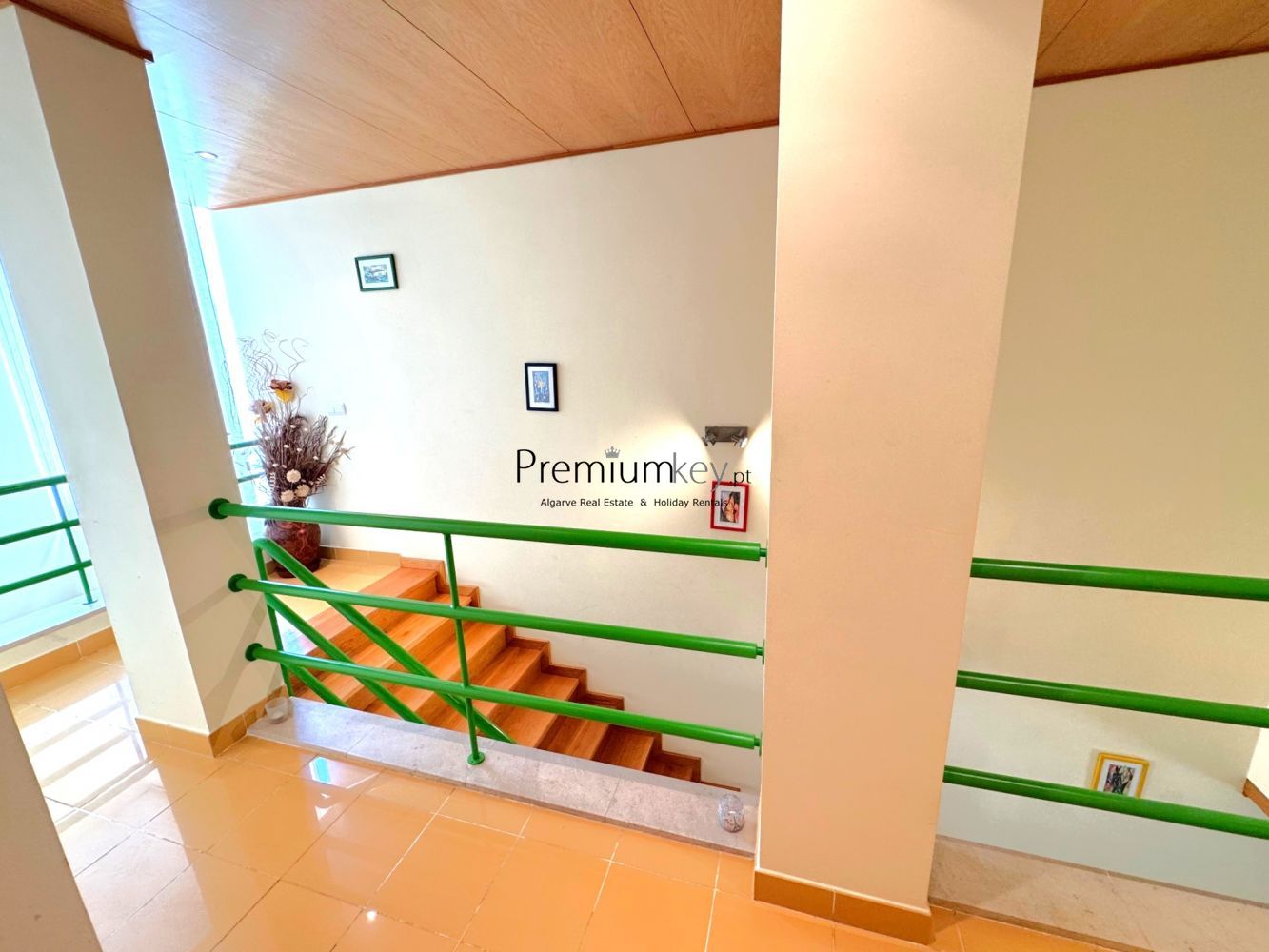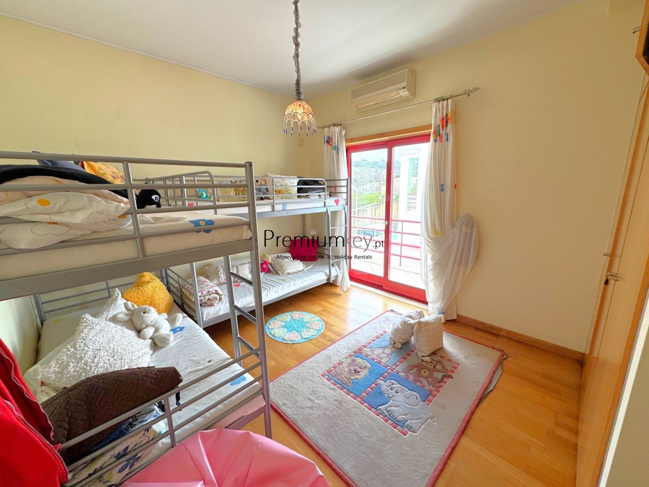 Construção e acabamentos de elevado padrão de qualidade como: alarme, ar condicionado e aquecedores de parede na sala e quartos, vidros duplos, caixilharia dupla de alumínio e uma claraboia que confere muita luminosidade a toda a moradia.